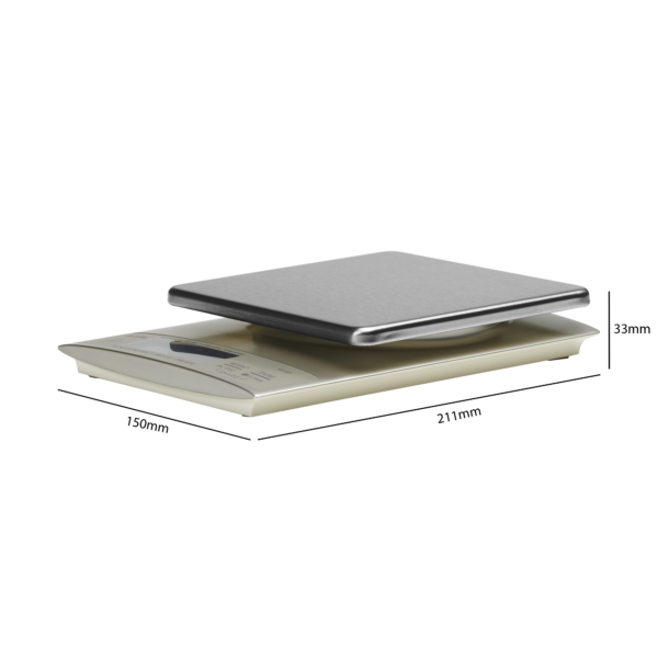 KD-321 ima protuklizni premaz i otporna je na prskanje. LCD zaslon je velik i lako čitljiv. Platforma od nehrđajućeg čelika lako se uklanja i čisti.